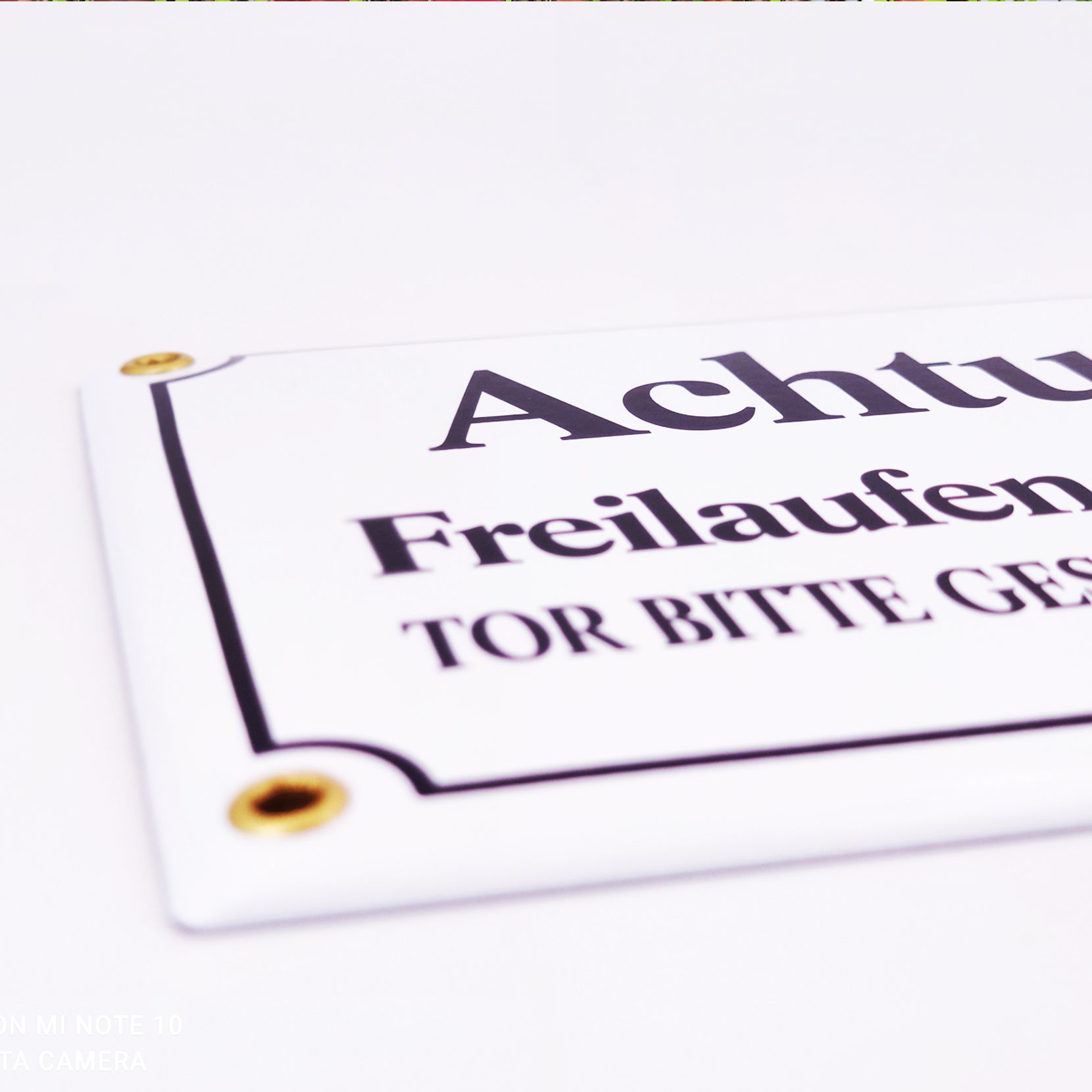 • Das Emaille Schild wurde mit dem Gedanken an verschiedene Witterungsverhältnisse handgefertigt. Perfekt für heiße Sommer und kalte Winter. Es verliert nicht unter dem Einfluss von Sonne oder anderes Wetter (sofern die Keramikstruktur intakt ist).