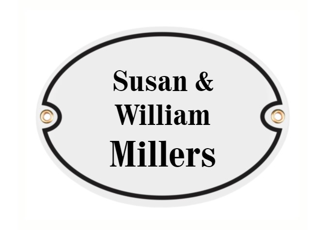 Modern Adresschild, Metall, emailliert, zweifarbig, wetterfest, personalisiert.