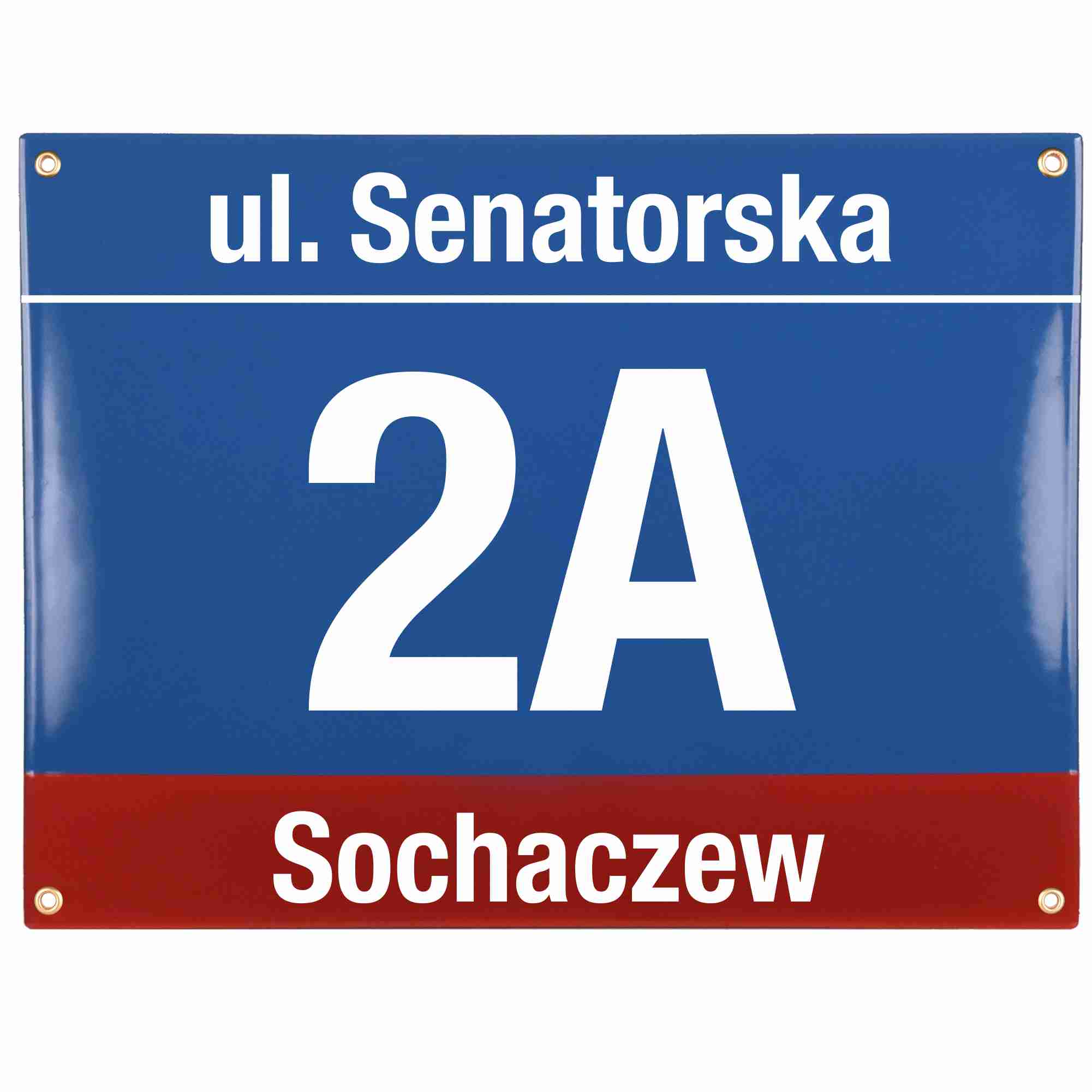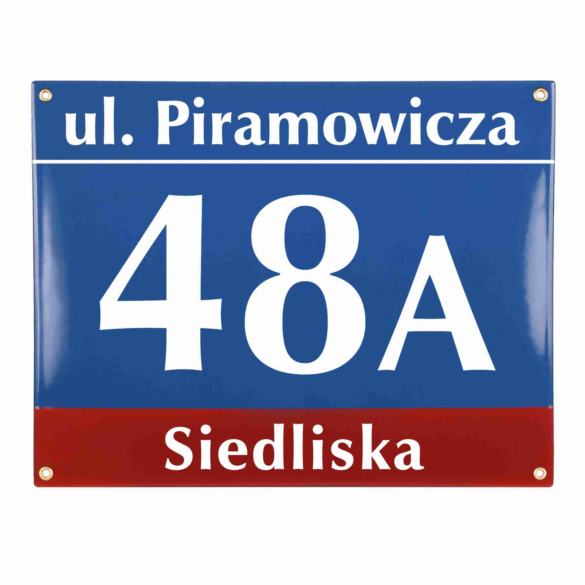 Modern Adresschild, Metall, emailliert, dreifarbig, wetterfest, personalisiert.