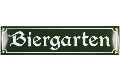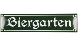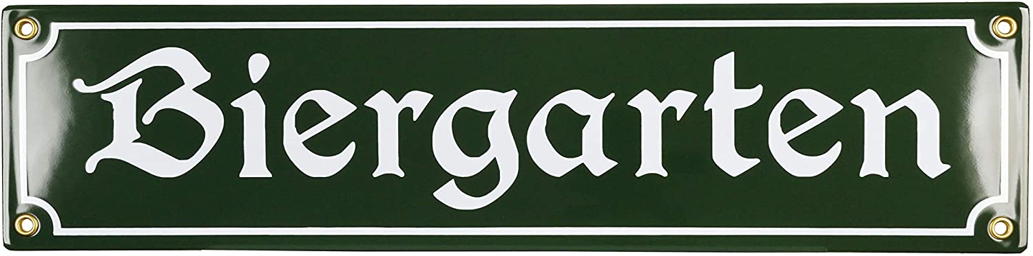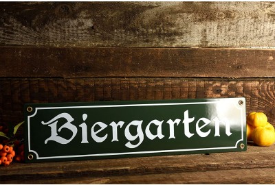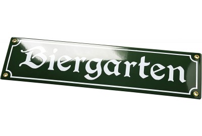 Biergarten Schild, 8x40 cm, Keramik Emaille, Wetterfest, Deko Blechschild, Grün