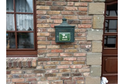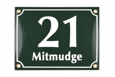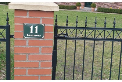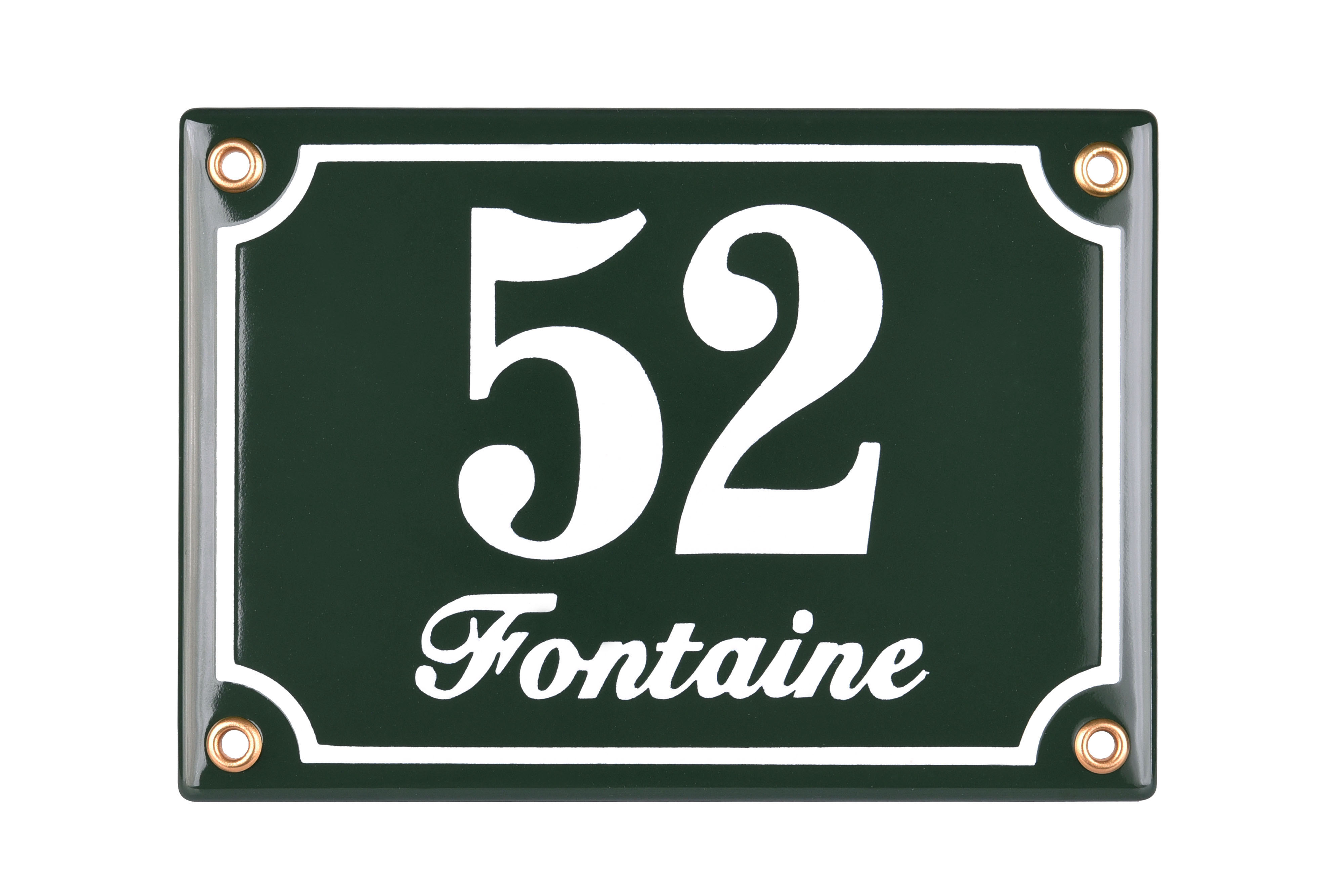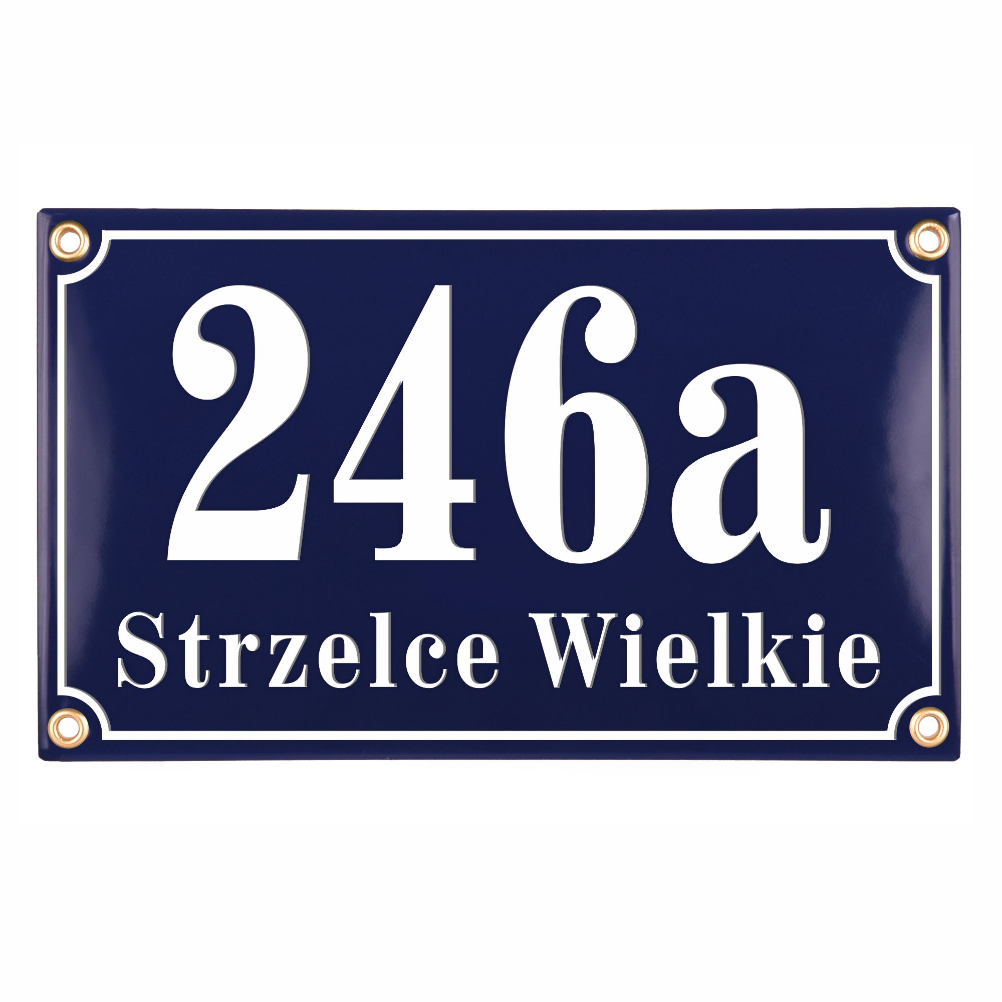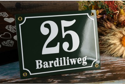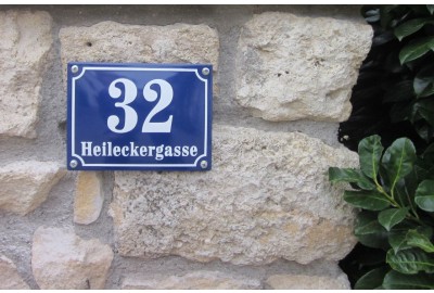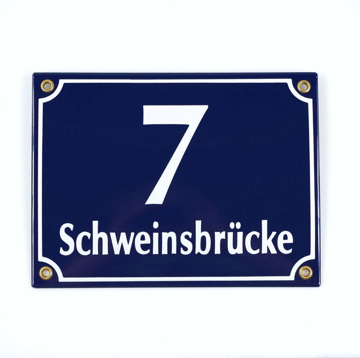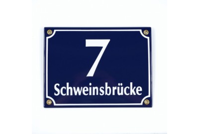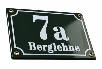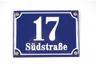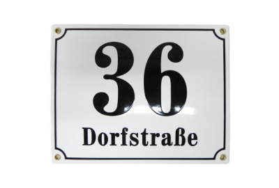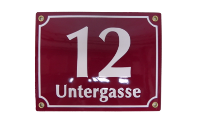 Klassisches Adresschild, Metall, emailliert, zweifarbig, wetterfest, personalisiert.