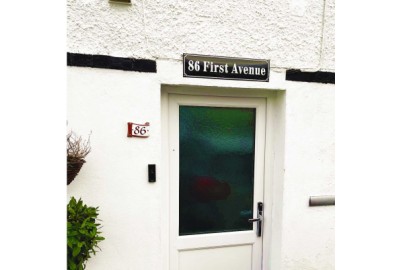 Modern Straßenschild, Metall, emailliert, dreifarbig, wetterfest, personalisiert.